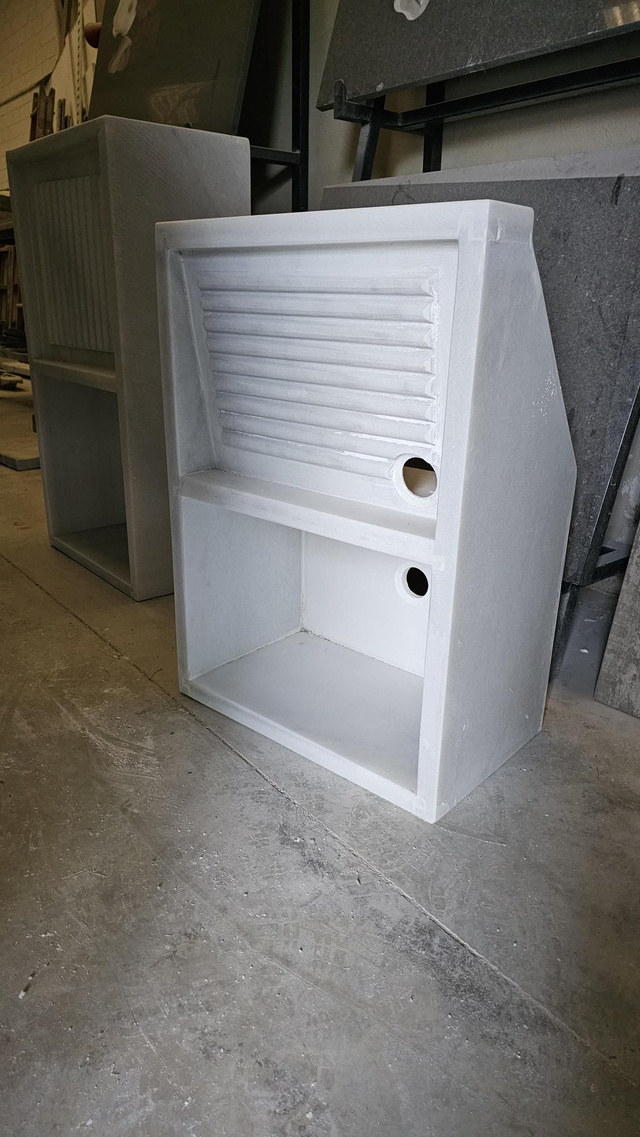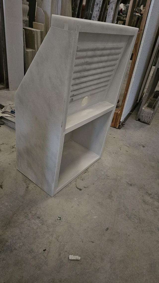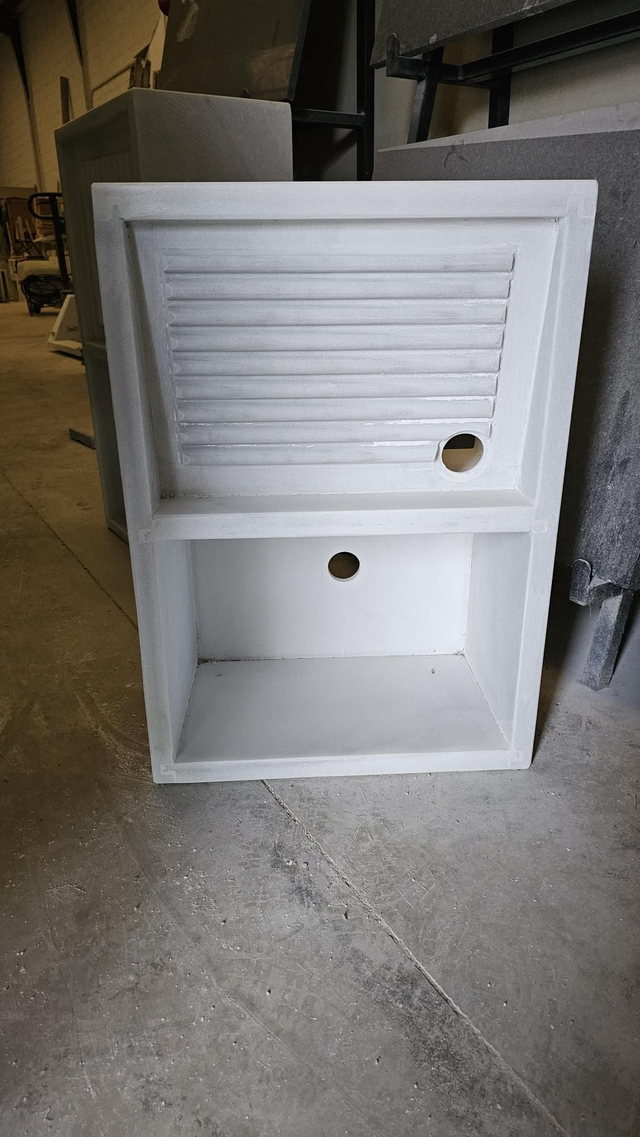 Lavadero de mármol blanco macael, montado a piezas, material comercial con vetas, varias medidas